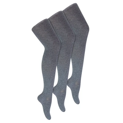 3 Pair Multipack Girls School Tights Soft Plain Opaque for (11 12 Years, Grey)