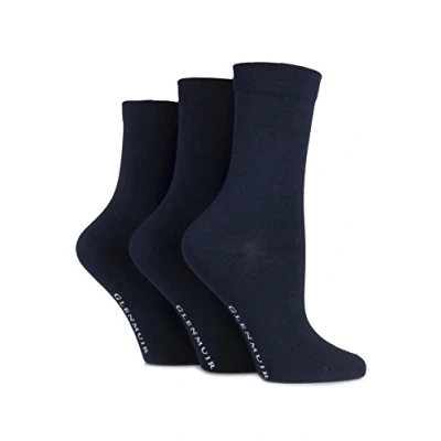 3 Pair Navy Classic Plain Bamboo Socks Ladies 4 8 Glenmuir