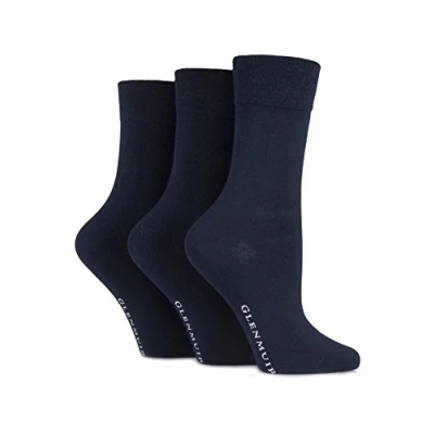 3 Pair Navy Comfort Cuff Plain Bamboo Socks Ladies 4 8 Glenmuir