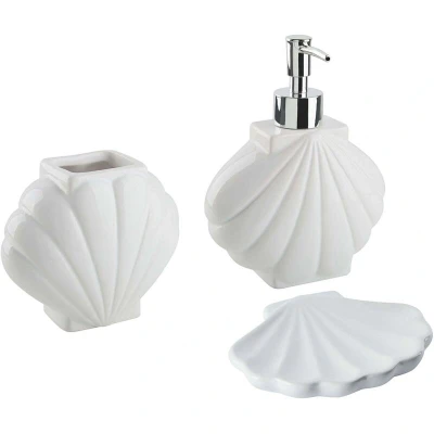 3 Piece Bathroom Accessories Set Dolomite Dispenser Toothbrush Cup White Shell