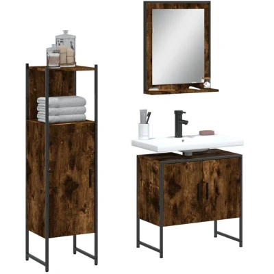 3 Piece Bathroom Cabinet Set Smoked Oak Engineered Wood Vidaxl