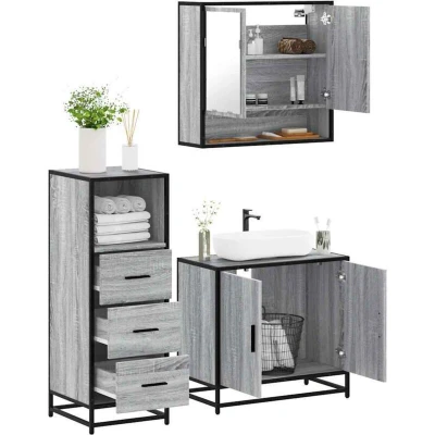 3 Piece Bathroom Furniture Set Grey Sonoma Engineered Wood vidaXL
