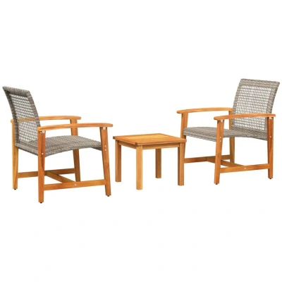 3 Piece Bistro Set Grey Poly Rattan and Acacia Wood Vidaxl