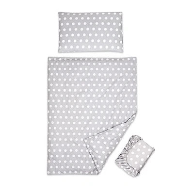 3 piece set Duvet Cover Pillowcase and Fitted Sheet for 140x70 cm Baby Cot Bed (Polka Dots Grey)