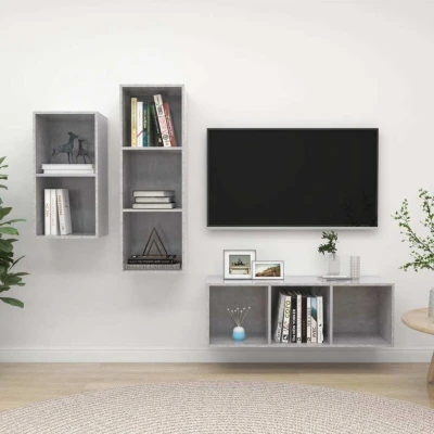 3 Piece tv Cabinet Set Concrete Grey Engineered Wood Vidaxl
