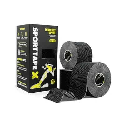 5-Day Waterproof Hold - Medical-grade adhesive stays secure through showers, sweat, and swimming. No peeling edges or sticky residue. SPORTTAPE has built a reputation for the strongest, stickiest kinetic tape and muscle tape around. Easy Application - Kinesiology Tape can be applied by anyone - from everyday athletes to professional physios. Always apply to clean, dry skin; with rounded edges, at least 30 mins before activity for best results. Each 5cm x 5m roll provides 10-15 applications Instant Support - Provides proprioceptive feedback for knee, shoulder, ankle, plantar areas. By reducing pressure on pain receptors, it may help to reduce pain when running or performing rehab exercises. Long Lasting Glue - Our muscle tape uses a medical-grade, hypoallergenic adhesive that is designed to last. When removing, keep skin taught, and use Tape Off removal spray if needed. Physio Recommended - Trusted by physiotherapists, chiropractors and sports therapists globally. Our sports tape offers professional-grade quality for effective home use, that is easy to self-apply. If you have questions, we're here to help.