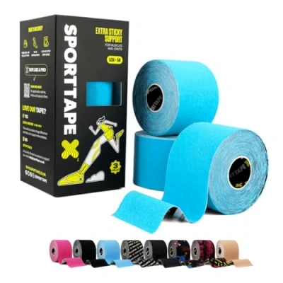 3-Pack Long-Lasting Waterproof Support – Includes 3 x 5cm x 5m rolls of waterproof Kinesiology Tape, designed to stay secure through sweat, showers and swimming. Ideal for regular training, rehab and competition, giving you reliable support without frequent reorders. Physio Tape - Used by physio and sports therapists worldwide, our stretchy medical tape can be used on all areas of the body as strapping tape for sports injuries, and may help with muscle and joint pain relief. Its most commonly used as a support tape for the knee, hamstring and ankle. Running Tape - Kinetic Tape is incredibly popular with runners and hikers. It is used as a blister tape, to help prevent friction hotspots in shoes, or to provide flexible knee support. It can also be used to provide proprioceptive feedback to other muscles, or as a plantar fasciitis tape to help support the arch. It may help to reduce pain when running or performing rehab exercises. Muscle and Sports Injury Tape - Kinesiology Tape is designed to reduce the pressure on pain receptors in the skin; providing support and strapping to fatigued or injured muscles and joints. The aim is to try and support the taped area, without being restrictive - meaning you can keep moving. Hypoallergenic & Waterproof Sports Tape - Once applied, it can withstand swimming, showering and sweating for multiple days. To make sure it sticks, apply to clean, dry ski;: round the edges, shave if needed, and make sure you wait 30 mins+ before starting exercise. Check out our videos to learn more about getting the most from your athlete tape!