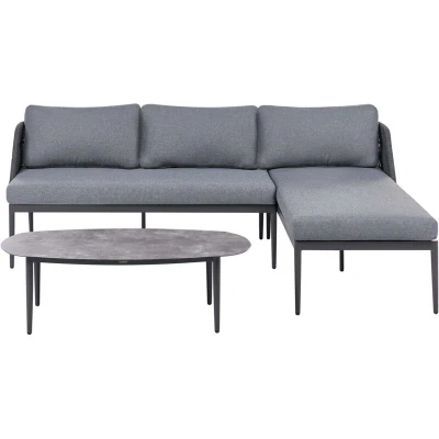 3 Seater Lounge Set Grey Left Hand Fabric Aluminium Frame Corner Sofa and Coffee Table Stylish Garden Furniture Patio LEFFE