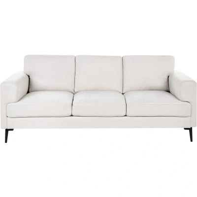 3 Seater Sofa Light Beige Fabric Upholstery Iron Legs Minimalistic Mid Cenutry Modern Style LOUSTO
