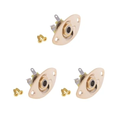3 set Electric Guitar Bass Parts Oval Style Output Jack Plate Socket Screws Gold