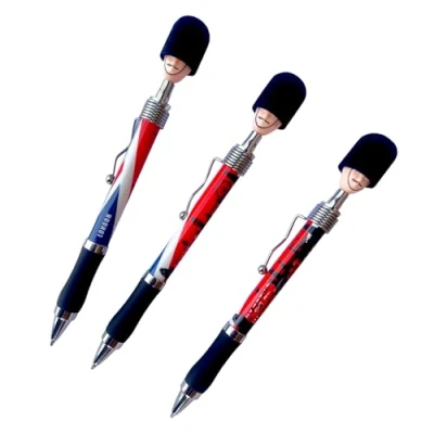 Soldier Head Union Jack Roller Ball Pens (Set of 3) Detailing Head of Buckingham Palace Guard Unique Design, features the iconic Union Jack flag design with soldier head, making it a stylish and patriotic accessory Perfect Gift, Ideal for gifting to friends, family, or colleagues who appreciate British culture or love stationery