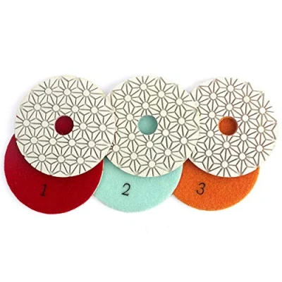 INCLUDES GRITS: 1# 2# 3# SPECIFICATION: Diameter 4inch/100mm, thickness 3mm--thicker than most 3 step pad APPLICATION: The polishing pads mainly used for granite marble quartz engineered stone surface & edge polishing PREMIUM QUALITY: Does not change in the color of the stone itself, with glazing fast, good brightness and not fade NOTE: Maximum 4,500 RPM for wet use
