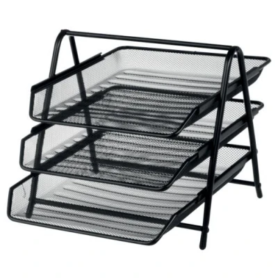 3 Tier Range Black Wire Mesh Desk Letter Trays