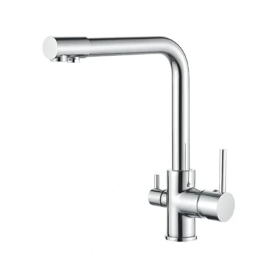 3 Way Mixer Tap for Reverse Osmosis Equipment. Faucet with 2 Water outlets. 1 hot and Cold Mains Water. Another Includes Connection Accessories. Bbagua.
