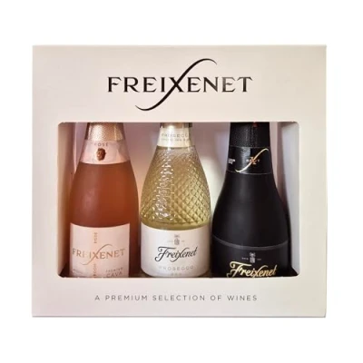Presented in a striking cut-glass bottle, Freixenet Prosecco blends superior quality with stunning beauty. Using its extensive sparkling winemaking expertise, Freixenet has created a stand-out, high quality and stylish wine that is the perfect for any occasion. Made from the finest Glera grapes in Italy's Prosecco region of Veneto, Freixenet Prosecco is as distinctive as it is delicious, with the lively effervescence of ripe lemon, hints of green apple, and grapefruit flavours. Cordon Negro is Freixenet's stylish, sparkling little black number. Made using the same traditional techniques as Champagne, this Cava from Catalonia has an unmistakable flavour, and comes in an iconic black bottle. This elegant brut cava is crisp, clean and well-balanced. The fresh palate of apple, ripe pear and bright citrus flavours; combine with a long finish and an exciting touch of ginger. Freixenet Rosé Dry Cava is fresh, fruity and has a very elegant sparkle This is the vibrant pink partner of Freixenet's famous Cordon Negro Cava. Made using the same traditional techniques as Champagne and two charming Spanish red grape varieties, Trepat and Garnacha. This stylish Freixenet Selection can be enjoyed at every occasion.