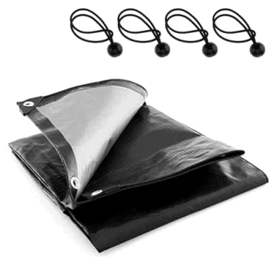 3 x 5 m Heavy Duty 235 GSM Black Tarpaulin Waterproof Furniture Caravan Cover Camping Ground Sheet Multipurpose + 4 Bungee Balls