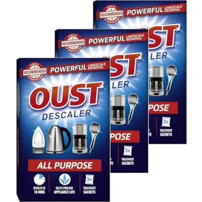 Effective descaling: OUST descaler removes tough limescale from kettles, irons, coffee machines, dishwashers, and washing machines. Quick results: Our products deliver fast results, with the all purpose descaler working in just 6 minutes and the washing machine & dishwasher descaler in 1 cycle. Versatile applications: Suitable for a variety of appliances and surfaces, including coffee machines, shower heads, and more. Prolongs appliance lifespan: Regular use of our products helps extend the lifespan of your appliances. Easy application: Simplify your cleaning routine with OUST, ensuring appliances maintain peak performance and shine.