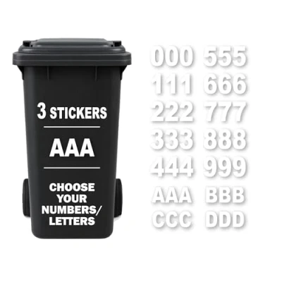 CLEARLY IDENTIFY YOUR BINS – You’ll receive a set of 3 bin numbers for wheelie bins, ensuring your bin or dustbin doesn’t get mixed up with your neighbour’s. EASY TO APPLY – No need for complicated instructions! These self-adhesive number stickers are designed to be stick on numbers for wheelie bins—just peel and apply. HIGHLY VISIBLE – At 18cm (7") tall, our bin stickers for wheelie bins ensure your bin labels stand out, preventing mix-ups on collection day. DURABLE & WEATHERPROOF – Made from high-quality adhesive numbers for wheelie bins, these wheelie bin stickers are built to withstand rain, wind, and sun for years. ORDER MULTIPLE NUMBERS – Want more than one number? Select the first number, add to basket, then repeat for the next. Your bin number stickers for wheelie bins will be made to order.