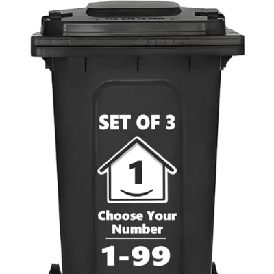 EASY BIN IDENTIFICATION – You’ll receive 3 sets of bin numbers for wheelie bins (1-99) featuring our unique Happy House design, perfect for making your bin stand out on collection day. GENEROUS SIZE FOR MAX VISIBILITY – Each wheelie bin sticker measures 15cm x 17cm, helping your wheelie bin numbers stay clear and recognisable at a glance. NO-FUSS APPLICATION – Our number stickers for wheelie bins are easy to apply: just clean your bin, peel the backing, and stick—no tools or instructions needed. DESIGNED TO LAST – Made from premium vinyl, these bin stickers for wheelie bins are waterproof, weather-resistant, and built to stay stuck through rain, wind, and sun. DESIGNED TO LAST – Made from premium vinyl, these bin stickers for wheelie bins are waterproof, weather-resistant, and built to stay stuck through rain, wind, and sun.