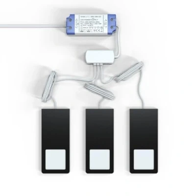 Pack of 3 Slimline Black Cabinet Lights - Only 4mm Thick Enhance your plain kitchen with this gorgeous LED under-cabinet light! Its chic black finish complements various design schemes, so it will not look out of place even if it's a later upgrade to the room. This LED cabinet light also has a slimline design . It only has a 4mm thickness , allowing it to create the illusion of being recessed even if it's surface-mounted. It adds texture to the surface but is not bulky enough to obstruct the clearing. Oh, did we mention that it comes in a pack of three ? Well, it does! So, if you're looking for a kit that will help you kickstart your home improvement project, check out this LED cabinet light multi-pack. Comes with a 15w LED Driver As mentioned, this bundle includes three stylish LED cabinet lights. However, that's not all! The multi-pack also comes with a 15w LED driver that's compatible with the cabinet fittings. This simplifies the process since you don't need to look for a separate driver in the endless selection available in the market. Plus, it reduces the chance of using the wrong one since it's already included ! Since this LED cabinet light is a 12v DC (low-voltage) fixture, you cannot wire it straight to your mains circuit. An external device must regulate and disperse the voltage to the lights. So, you must use the provided driver to avoid overloading the driver and ruining the under cabinet fittings. Colour Temperature Adjustable - Choose Between Cool White, Natural White and Warm White Light Colour temperature is a hidden card in lighting design. Those who don't know its value don't think hard about their choices, but for those who know, it's a difficult decision to make on the spot. With this cabinet light, you don't have to struggle that hard to get the perfect LED colour for your space! It is colour temperature adjustable , so you can take more time testing the waters before settling. Rather than radiating a single hue, you ll have access to cool white, natural white and warm white light. Just locate the small toggle switch on the side of the fitting and slide left or right to choose your ideal or most suitable LED colour! Made from Aluminium with 3 Year Warranty Why subject yourself to an endless cycle of buying light fixtures, installing, dismounting, and replacing them? Doing that every month for years is not cost-effective, even if the fitting is relatively cheap. Plus, the effort and time you spend are futile since they are not durable. This LED cabinet light is made from aluminium , so it won't easily deteriorate even after years of use! Its top-quality construction allows the fitting to endure in an environment with various elements hovering around, waiting to strike. It also has a 3-year warranty and a built-in 2000mm cable . If the cable is insufficient for your application, you can use our plug-and-play extension cable , which you can get in 2 or 5 metres. Outstanding Brightness! 400 Lumens LED lighting is at the top of the lighting industry leaderboard. Well, that's expected because of its unparalleled efficiency! LEDs can deliver a significant amount of brightness for a minimal amount of power consumption. How can they do this? They can transform most of the energy they consume into light, with very little ending up as waste (heat). Powered by that outstanding technology, this LED cabinet light only requires 5w of power to produce 400 lumens maximum illumination with a broad 120-degree beam angle . It is also long-lasting , keeping your home well-lit for 30,000 hours . If you aim to boost your energy savings and reduce maintenance expenses, get this LED cabinet light! Compatible with our Remote Control/Receiver Set & Smart Devices There are multiple ways to manage this LED cabinet light. Because of this, you can set the method that is most suitable for your day-to-day life or the one that readily adapts to your needs. The most simple and straightforward way to control this cabinet light is by wiring the driver directly to the mains circuit to turn it on/off using a standard light switch. There's also the option to add a plug to the driver's end and plug it into an available socket. For more cutting-edge lighting management, pair this cabinet light with our remote control/receiver set or link it to smart home devices like Alexa or Google Home. You'll need a smart home LED driver if you want to go for smart management . Just be reminded that based on the number of cabinet lights you'll use, you'll either have to purchase a 15w smart LED driver (3 lights) or a 20w smart LED driver (4 lights).