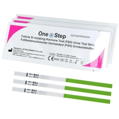 FOLLICLE STIMULATING HORMONE: This test is suitable for you to do at home and measures the levels of F.S.H. in a sample of your urine. High levels of F.S.H. can signal that your body is entering menopause EARLY DETECTION: FSH urine tests can help in the early detection of menopause by measuring elevated FSH levels, which typically occur as a woman approaches menopause. This allows for timely intervention and management of symptoms INDIVIDUALLY PACKAGED: Each One Step FSH Test is sealed in its own pouch for protection and easy handling EASY TO USE: The test's clear result format with two lines for positive and one for negative makes it easy for users to interpret their FSH levels accurately, providing a straightforward indication of their menopausal status without complex analysis