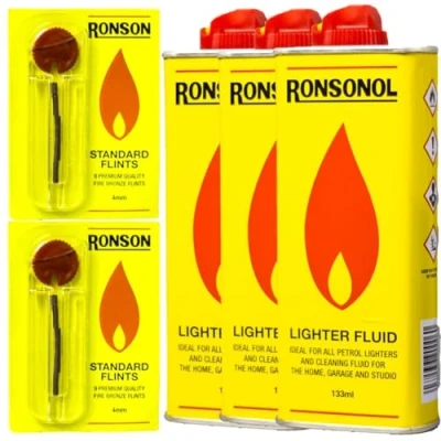 3 X Lighter Fluid 133ml Long Lasting, Clean Burning Fuel for Everyday Use With 2 Ronson '9s' Flints (2)