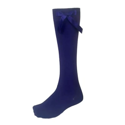 3 X Pairs Of Kids Girls Knee High School Socks With Matching Bow Black Navy Grey White (Shoe Size 6 8.5 (2 4 Yrs), Purple)