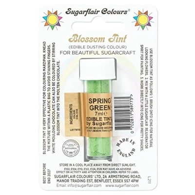 Sugarflair Blossom Tint Food Colouring Powder - Add colour to your cakes and bakes with this concentrated food colouring and dusting powder from Sugarflair which comes in a variety of colours including Black, Blush Pink, Brown, Foliage Green, Lemon Yellow, Petal Blue, Poppy Red, Old Gold, White and more so sure to match your celebration theme. 100% Edible Food Colouring Powder - All products in the Sugarflair Colours Blossom Tint food colouring dust range are completely edible and can be used to colour cake decorations, bakes, icing, pastes, white chocolate and royal icing or can be mixed with a little Rejuvenator Spirit, Dipping Solution, or alcohol to create an edible food paint. Versatile Food Colouring and Dusting Powders - These Blossom Tint powders can be dusted onto cake decorations and surfaces or mixed into Sugarpaste, Buttercream, Royal Icing, Chocolate, Modelling Pastes, Batters and more to give a bright and vibrant finish. Create Unique Special Occasion Cakes & Bakes - Every birthday, anniversary or other special occasion calls for a special cake. Create unique designs from a near infinite rainbow of colour and shades with these Sugarflair edible blossom tint food colouring powder from Sugarflair Colours. Nut Free, Gluten Free, GM Free, Kosher. Suitable for Vegetarians and Vegans