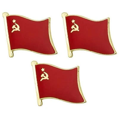 3 x USSR Soviet Union Communist Russia Flag Pin Badges