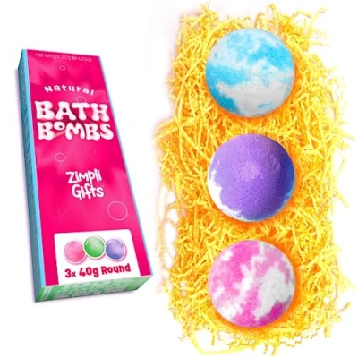 3 x Value Bath Bomb Gift Set from Zimpli Gifts, Ideal Stocking Fillers for All, Xmas Presents Women & Teenagers, Christmas Fizzing Bubble Bombs, Relaxing Pamper Kit