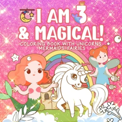 3 Year Old Girl Birthday Gift : I am & Magical Coloring Book with Unicorns, Mermaids, Fairies: Cute / Special Christmas For Little Age