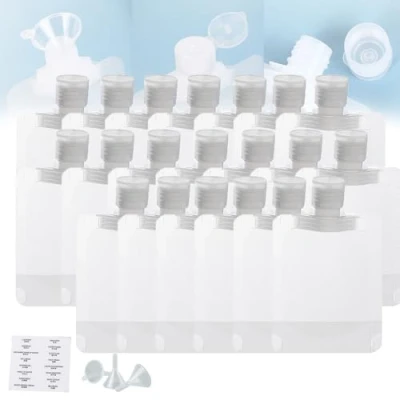 【Durable Material】Made of high quality eco-friendly material, strong enough and durable for a long time. Our lotion packing bags make it easier to carry cosmetics, washable & reusable 【Leak Proof Design and Easy to Carry】The tight threading can prohibit any leakage. The travel size pouch will bring you a more convenient and durable experience 【Transparent Bag and Label Stickers】Travel size refillable empty squeeze pouch transparent bottle body can check the filling capacity and usage, and check it at any time, which is convenient for replenishment and easy to distinguish 【Convenient to Use】Leak proof squeeze pouches can be used directly by squeezing it, making it easy to dispense your toiletries,squeeze pouches refillable 【Leakproof Approved Material】Portable travel fluid makeup packing bag has a flip-top lid for a tight seal that is less likely to leak or break for easy squeezing without wasting any drops