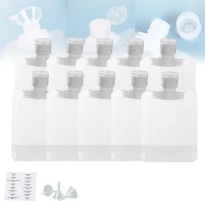 【Durable Material】Made of high quality eco-friendly material, strong enough and durable for a long time. Our lotion packing bags make it easier to carry cosmetics, washable & reusable 【Leak Proof Design and Easy to Carry】The tight threading can prohibit any leakage. The travel size pouch will bring you a more convenient and durable experience 【Transparent Bag and Label Stickers】Travel size refillable empty squeeze pouch transparent bottle body can check the filling capacity and usage, and check it at any time, which is convenient for replenishment and easy to distinguish 【Convenient to Use】Leak proof squeeze pouches can be used directly by squeezing it, making it easy to dispense your toiletries,squeeze pouches refillable 【Leakproof Approved Material】Portable travel fluid makeup packing bag has a flip-top lid for a tight seal that is less likely to leak or break for easy squeezing without wasting any drops