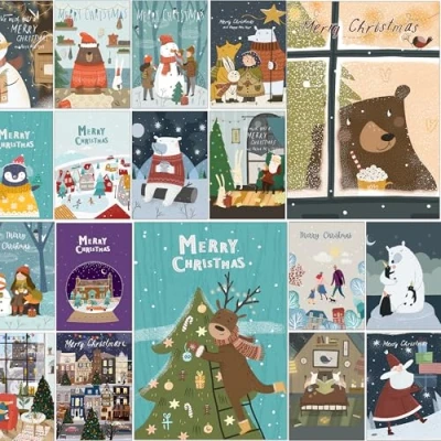 We refer to this Christmas card set as "Krafty Bears" not because the bears are sneaky but there are a few bears in the set and the set comes with rustic kraft envelopes made from recycled paper. So no worries, the bears are not that krafty. 30 different designs all nice and bright and fun, like Christmas should be. A mix of designs so you can send everyone an unique card! These cards are printed on thick card (300gsm) with a slight subtle gleam to it, so when the card catches the light it sparkles slightly like snow. Perfect for Christmas if you ask us! The cards are A6 size when folded, about 15x10cm. The envelopes are slightly larger so the cards fit in them, obviously :) The cards and envelopes are fully recyclable and the envelopes are made from recycled paper. Great fun little set suitable for kids or adults, a nice mix and great value for 30 different designs.