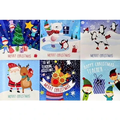 π 30 Mini Christmas Cards for Kids β Perfect size for little hands! Includes 6 fun designs to spread festive cheer among classmates, friends, and family. π§βπ« Includes Cards for Teacher & Teaching Assistant β Thoughtfully designed with a special card just for teachers and teaching assistants β ideal for classroom gift-giving. βοΈ White Envelopes Included β Comes with 30 white envelopes to make handing out or posting cards easy and mess-free. ποΈ Pre-Printed Message Inside β Each card reads βMerry Christmasβ inside β great for younger children who may find writing tricky. π§βπ Fun, Child-Friendly Designs β Featuring Santa, snowman, reindeer, penguin, polar bear, and more β colourful, cheerful and perfect for boys and girls.