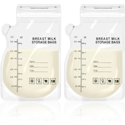❤ Leak-Proof & Secure Storage ❤ Designed with a double-ziplock seal and reinforced side seams, our breast milk storage bags effectively prevent leaks and keep air out, ensuring the freshness and nutritional value of your milk. ❤ Easy to Fill & Pour ❤ The dual-opening design allows for separate filling and pouring, eliminating mess and making milk transfer effortless. Simply tear along the easy-cut spout—no need for scissors—ensuring a smooth, spill-free pour. ❤ Large Capacity & Accurate Measurement ❤ Each bag holds up to 250ml (8.5oz) of breast milk and features a double measurement scale, allowing for precise feeding and minimal waste. A labeling area lets you record essential details like name, volume, and storage date. ❤ Space-Saving & Self-Standing Base ❤ The self-standing base allows for easy placement in bottle warmers and enables both vertical and horizontal storage in the refrigerator or freezer, optimizing space and organization. ❤ Value Pack for Busy Moms ❤ Each pack includes 30 pre-sterilized milk storage bags, providing a convenient and hygienic solution for breastfeeding mothers. A must-have for safe and efficient breast milk storage.