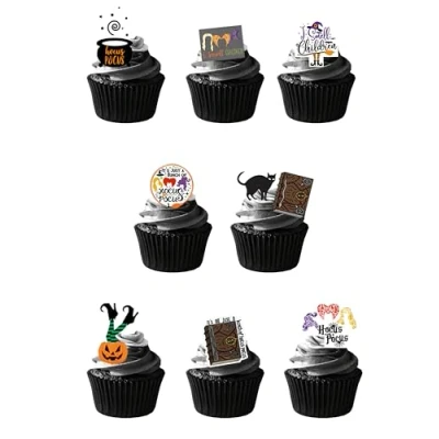 30 Stand Up Hocus Pocus Halloween Witches Themed Edible Wafer Paper Cake Toppers Decorations Just cut them out and then push them into buttercream icing and they will stand up You will receive 30 Stand Up Hocus Pocus Halloween Witches Themed Images which REQUIRE CUTTING OUT and are then ready to place straight on your cakes. (Images range in size from 2cm - 4cm in Height). Fully edible with a shelf life of at least 12 months from purchase if kept dry Fully Edible - Wafer Paper ingredients - Water, Sunflower Oil and Potato Starch, Manufacturer: Orange Trading Dartmouth LTD