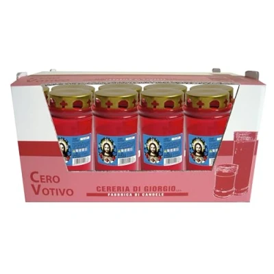 30 Votive Candles Dedicated to The Sacred Heart with Rain Cover Red Model P50 55 Hours Duration Cereria Di Giorgio