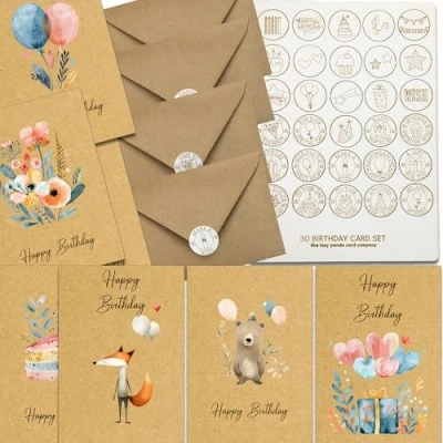 30 Different Bright and Fun Assorted Birthday Cards with Envelopes