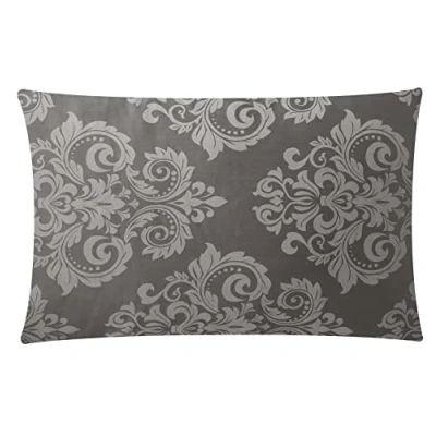 30 x 50cm Jacquard Cushion Covers Rectangular Zipped Cases Cotton Rich 600TC Plain or Floral Patterns Machine Washable [Dark Grey 225]