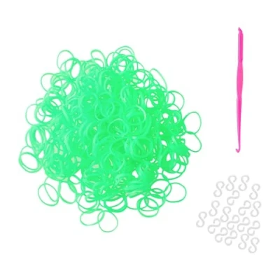 300 Green Loom Bands Refill Pack with Hook Tool and Clips Art Craft Friendship Bracelet Jewellery Making Childrens Game