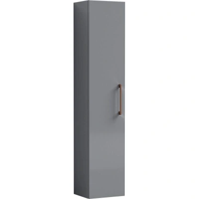 300mm Wall Hung Tall Unit 1 Door Bathroom Storage Cabinet Satin Grey with Copper Handle, 1433 x 300 235mm