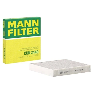 MANN-FILTER Cabin Air Filter CUK 2440 / Dimensions (mm): A = 235; B = 210; H = 35 / Premium Filter in Original Equipment Quality High-quality MANN-FILTER cabin filters with active carbon - nearly 100% protection from particles like pollen, diesel soot & tyre abrasion / Additional protection from harmful gases & unpleasant odour The trated highly-effective activated carbon gives protection against harmful gases such as ozone, nitrogen oxide or sulphur dioxide and eliminates unpleasant odours during the entire service interval Looking to find the correct filter? Select: brand, model, vehicle type, and engine type above to see which one fits your vehicle MANN+HUMMEL complies with REACH-regulation + supports the goal of Improved health and safety through the design, manufacturing, usage, disposal and recycling of our products