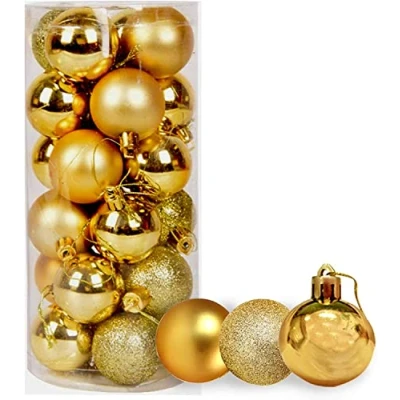 🎄🎅 This pack contains 12 deep gold baubles an assortment of glitter, matte and shiny surface finish. Each bauble measures approximately 3cm and comes with a silver top with a silver string loop attached. 🎄🎅 These Christmas decorations are made of durable plastic to provide a shatterproof, safe finish compared with more traditional glass counterparts. They give the appearance, glitz and glam of glass ornaments without the risk! 🎄🎅 They can also be used to make a garland by threading string or ribbon through the top and hanging them up in the window, from the mantel piece or on the wall. 🎄🎅 Widely used: The durable ball ornaments can be used for indoor & outdoor Christmas decorations, such as Christmas tree, patio, porch 🎄🎅 These Christmassy baubles come in a handy box that they can be stored away in for next year.