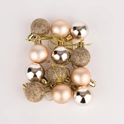 🎄🎅 This pack contains 24 champagne gold baubles an assortment of glitter, matte and shiny surface finish. Each bauble measures approximately 3cm and comes with a golden top with a golden string loop attached. 🎄🎅 These Christmas decorations are made of durable plastic to provide a shatterproof, safe finish compared with more traditional glass counterparts. They give the appearance, glitz and glam of glass ornaments without the risk! 🎄🎅 They can also be used to make a garland by threading string or ribbon through the top and hanging them up in the window, from the mantel piece or on the wall. 🎄🎅 Widely used: The durable ball ornaments can be used for indoor & outdoor Christmas decorations, such as Christmas tree, patio, porch 🎄🎅 These Christmassy baubles come in a handy box that they can be stored away in for next year.