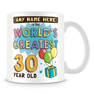 30th Birthday Gift for Men Personalised Mug/Cup Add Name Worlds Greatest Design Blue