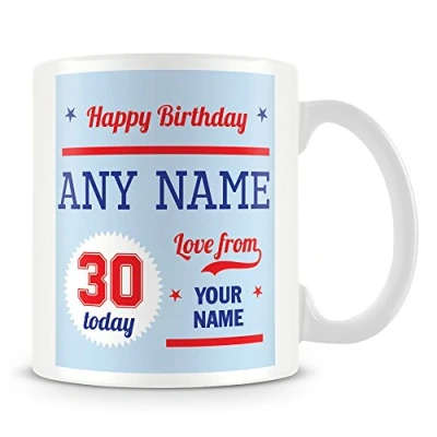 30th Birthday Gift Personalised Mug/Cup Add Name Blue