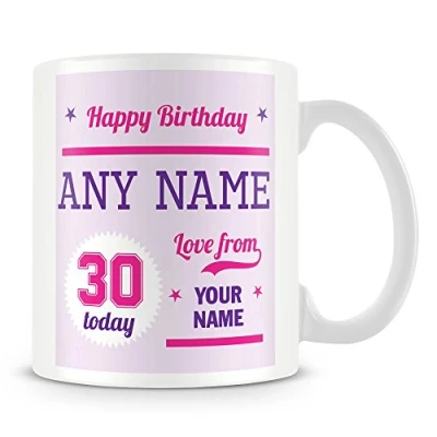 30th Birthday Gift Personalised Mug/Cup Add Name Pink