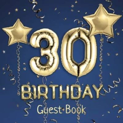 30th Birthday Guest Book: Message Logbook and Book for Party 100 Pages Guests to leave their Comments & Wishes Blue Cover with Golden Balloons