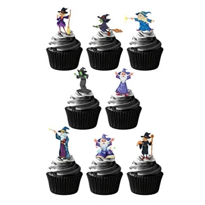 31 Stand Up Halloween Witches and Wizards Themed Edible Wafer Paper Cake Toppers Decorations Just cut them out and then push them into buttercream icing and they will stand up You will receive 31 Stand Up Halloween Witches and Wizards Themed Images printed with edible ink on wafer paper which REQUIRE CUTTING OUT and are then ready to place straight on your cakes Fully edible with a shelf life of at least 12 months from purchase if kept dry Fully Edible - Wafer Paper ingredients - Water, Sunflower Oil and Potato Starch, Manufacturer: Orange Trading Dartmouth LTD